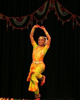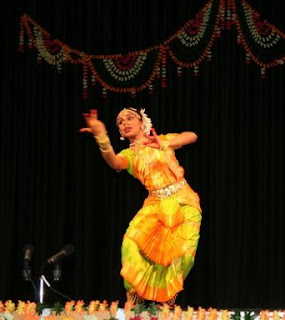 JA introduced my last padam, Kalai Thooki. I remember to stretch my quads for this one...usually I don't and end up screwing the poses because I pull a muscle or something. The poses came out fine, as did most of the dance, except for one part where Geetha Aunty sang one line twice, realized her mistake, and switched into the next line of the song. I had to do some crappy improvisation that probably did not remotely fit the words. Luckily, I don't think anyone caught that. At the end of Kalai Thooki, I made the split second decision to actually end in a Nataraja pose. Luckily, it held up until the lights dimmed. Yay. I'm getting good at this impromptu thing.